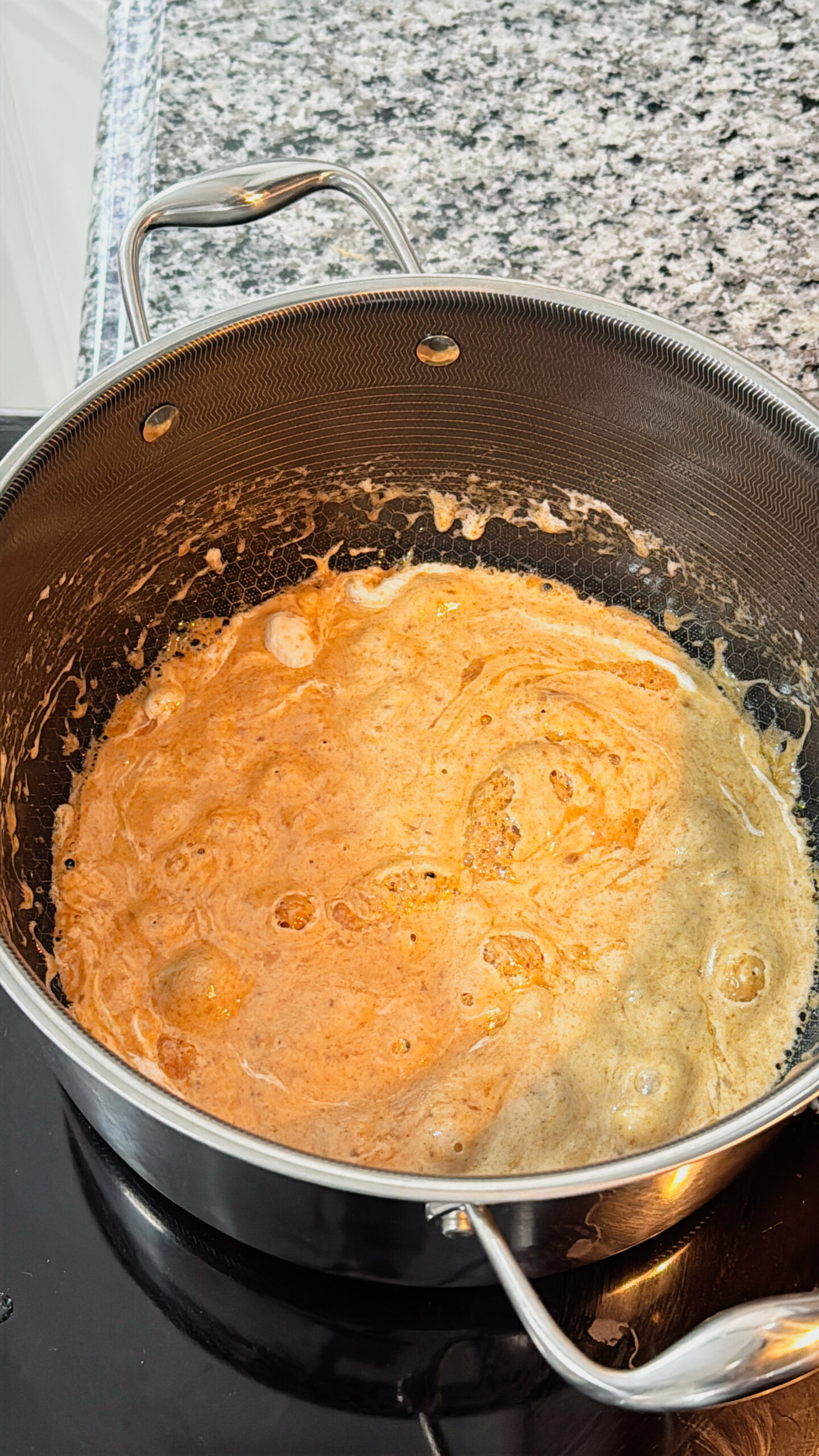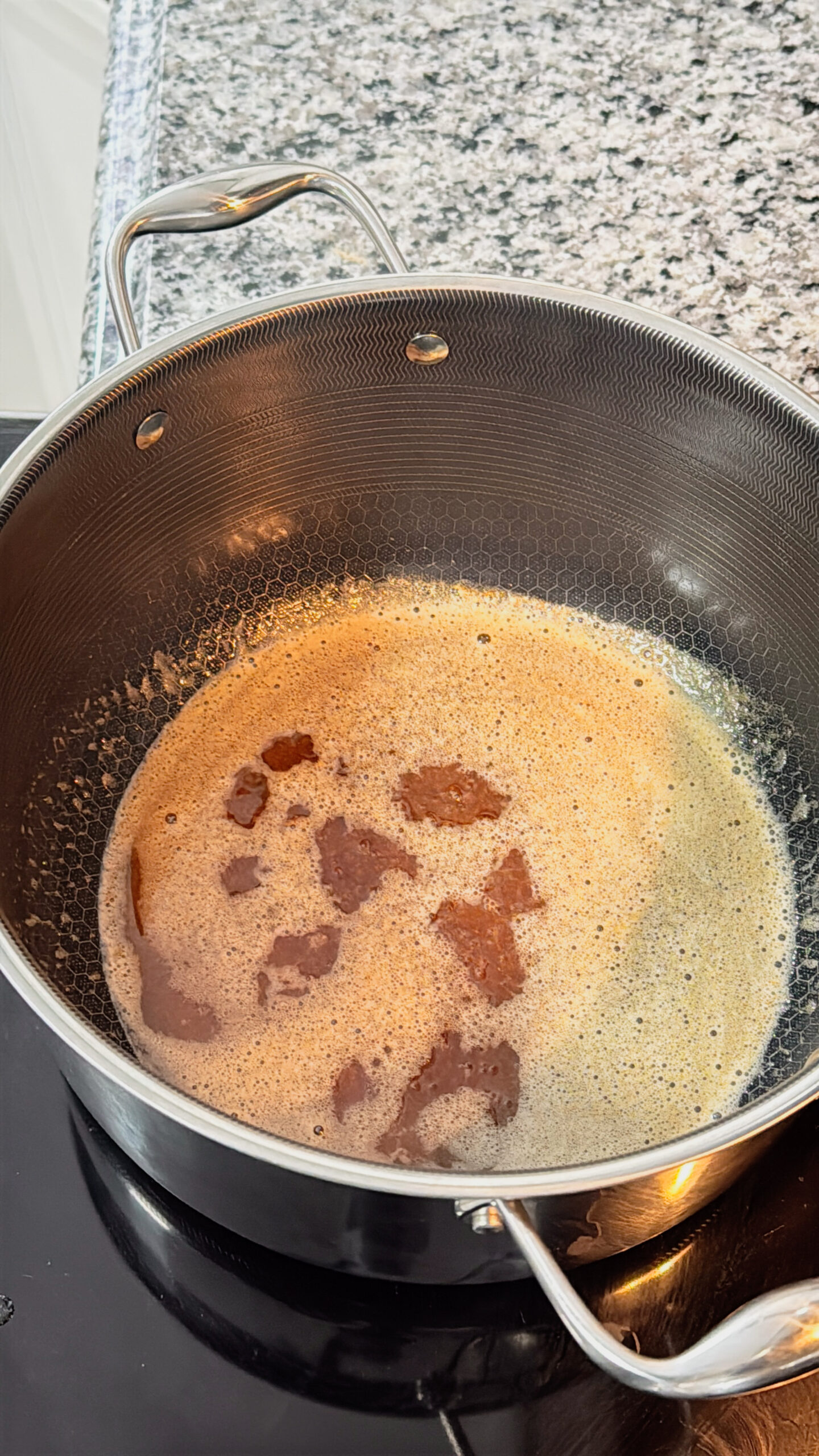 - First, melt the butter in a large pot over medium heat, stirring occasionally, until it bubbles, turns golden brown, and smells rich and nutty.