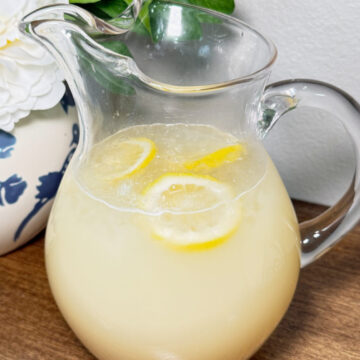 When we make creamy lemonade at home, we like to serve it over ice in tall glasses. It works perfectly for lunch on the porch, an afternoon snack, or even alongside dinner when the sun is shining. Its simplicity makes it ideal for entertaining, and kids and adults alike love sipping this tangy, creamy treat. Sometimes, we make a Creamy Strawberry Lemonade too! (Recipe linked)