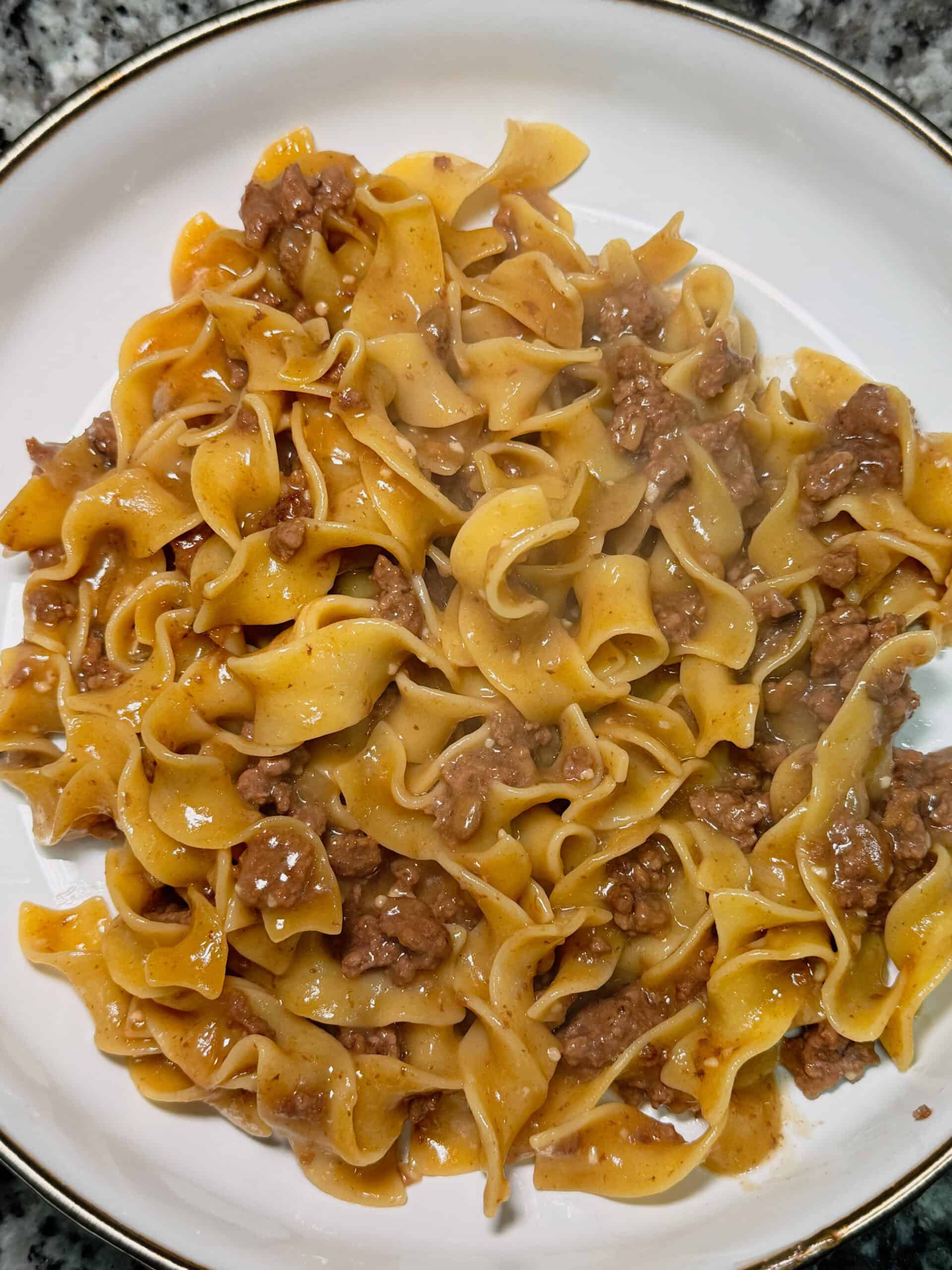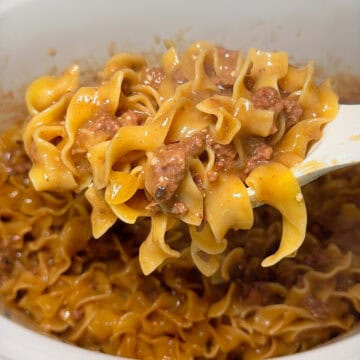 When reheating, warm it on the stovetop over medium low heat or in the microwave in short intervals, stirring in between. If the sauce thickens too much, add a splash of beef broth or a little milk to loosen it back up and keep it creamy.