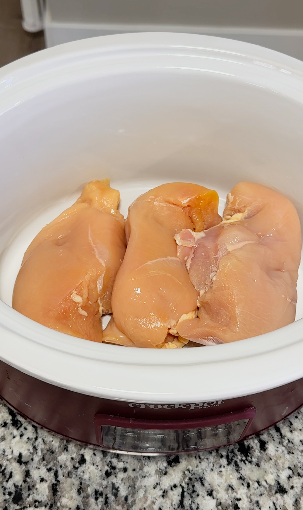 - Place the chicken breasts in the bottom of the crockpot. Spoon the cream of chicken and cream of celery over the top without mixing.