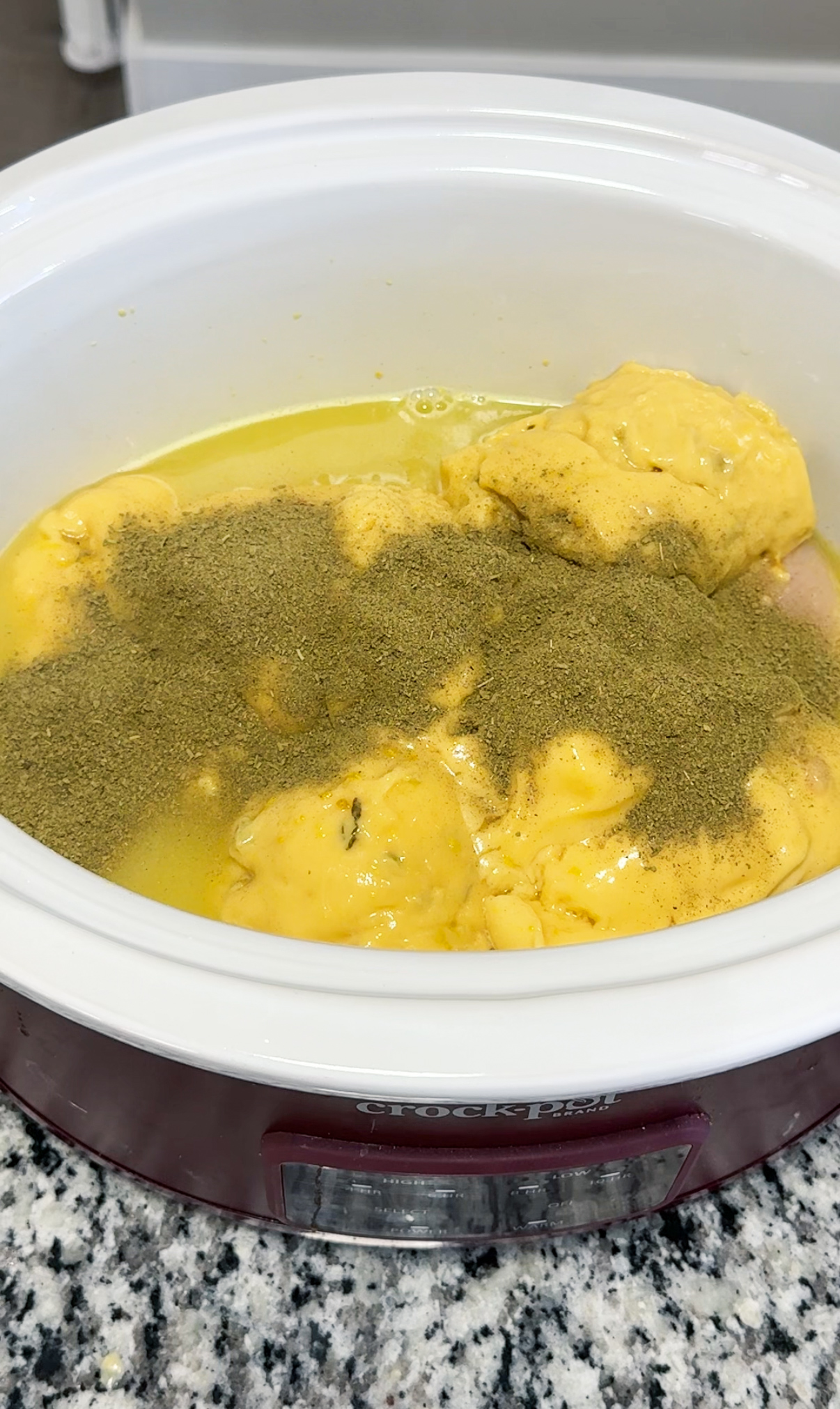- Dissolve the Better Than Bouillon in warm water, then pour it into the crockpot. Add the poultry seasoning, sautéed onions and garlic, along with salt and pepper, then mix everything together.