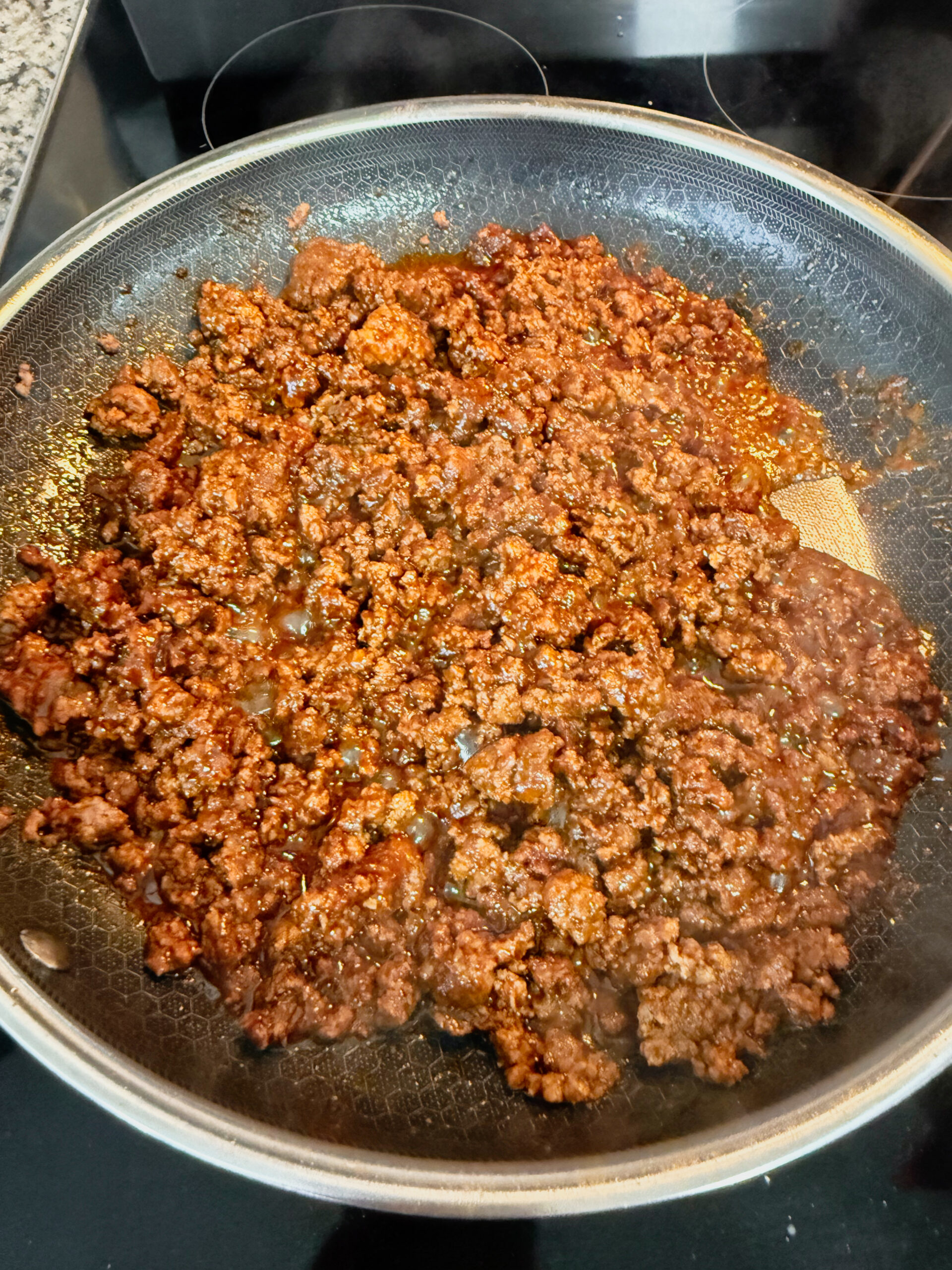 • Step 4: In the same pan, brown the ground beef and add the taco seasoning, Roasted Beef Flavored Better Than Bouillon, cumin and paprika until fully combined.