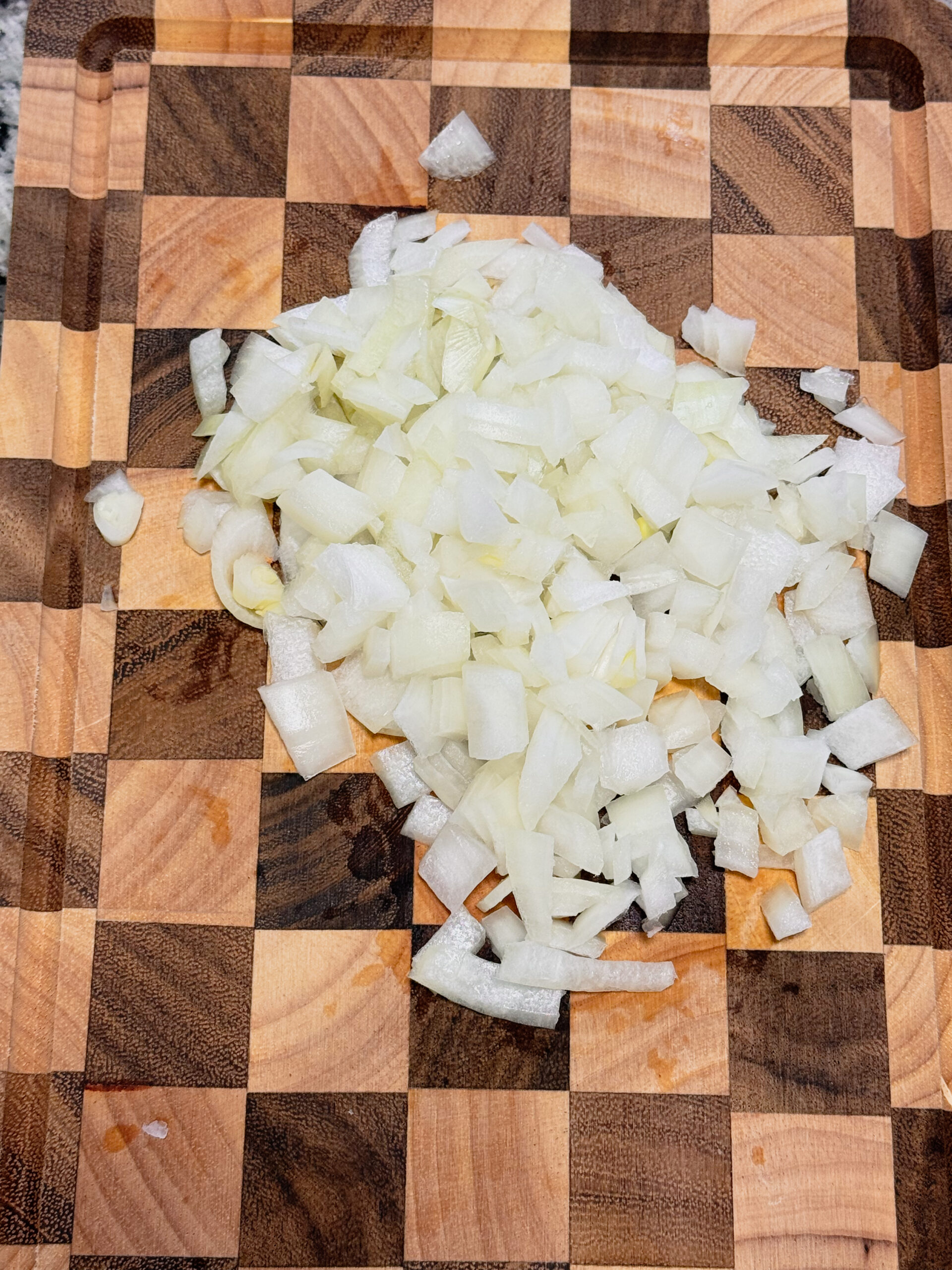 • Step 2: Mince the garlic and dice the onions.