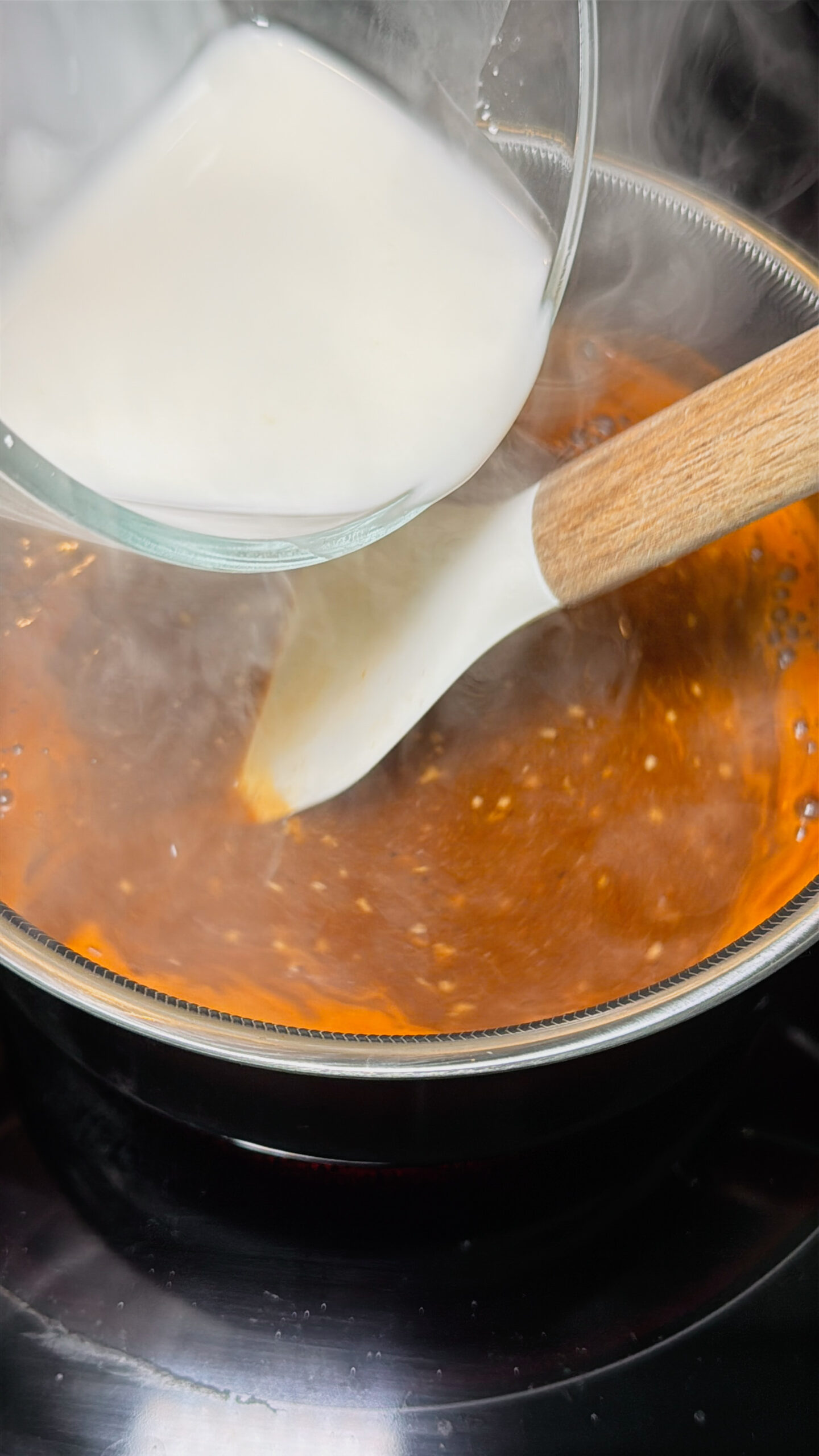 1. Step 3: In a small bowl, mix equal parts (¼ cup of each) cornstarch and cold water. Slowly stir this slurry into the sauce and continue cooking until it thickens slightly but remains a little runny.