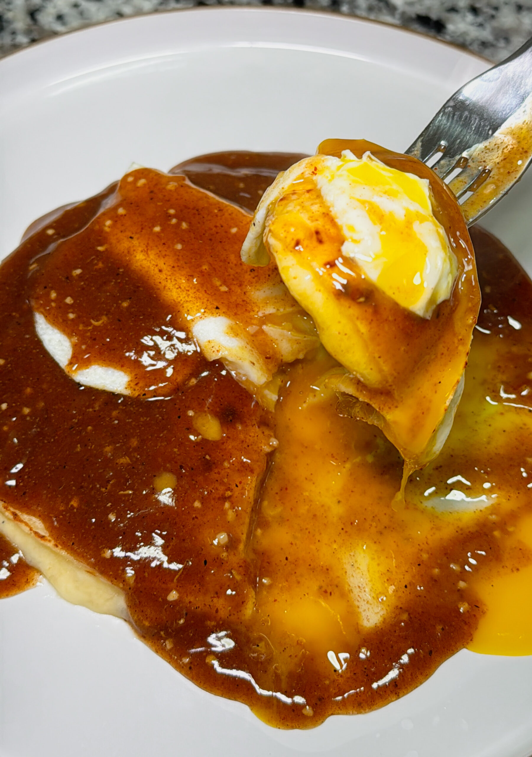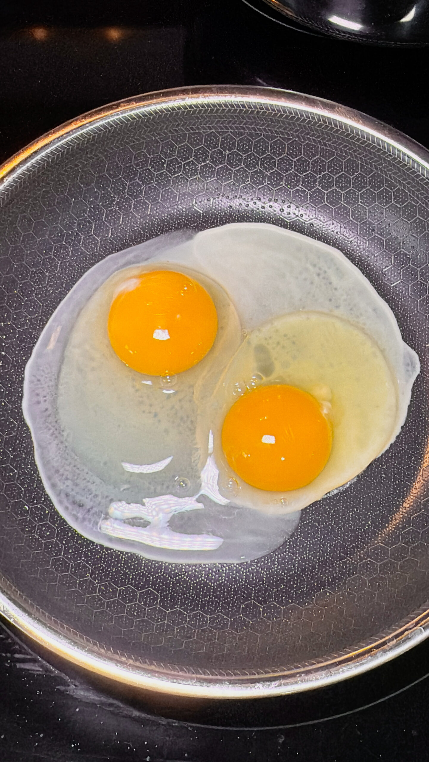 • Fry eggs in the same skillet or a separate one until cooked to your liking, aiming for runny yolks.