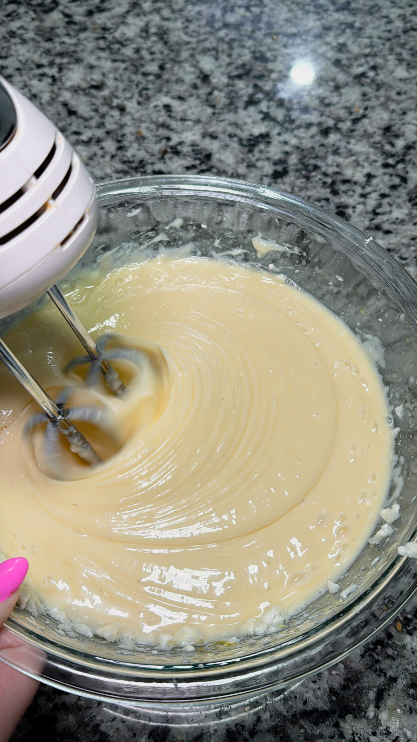 1. Step 3: Meanwhile, beat the softened cream cheese and sugar in a large bowl until smooth, then add the eggs and mix until fully combined.