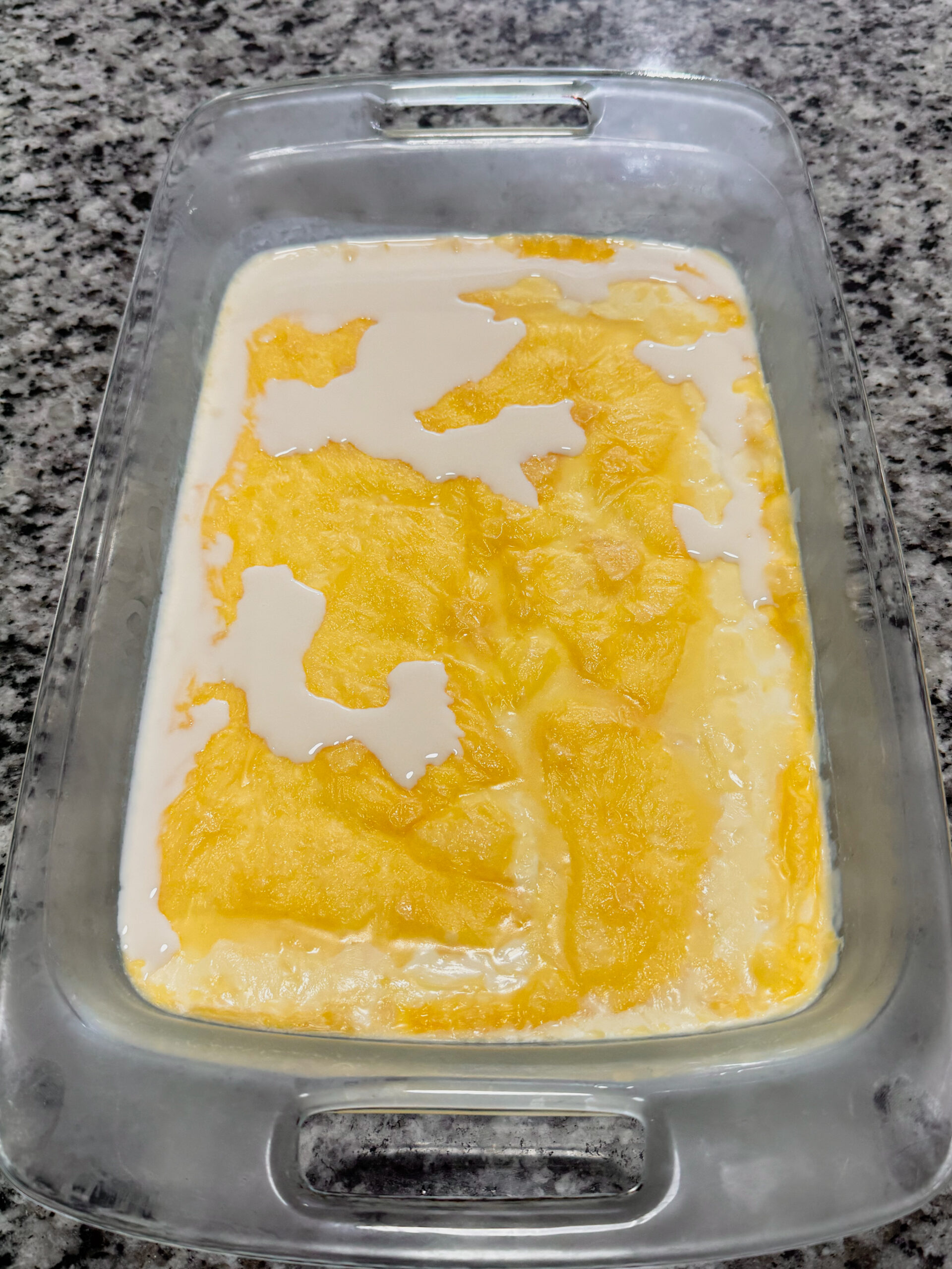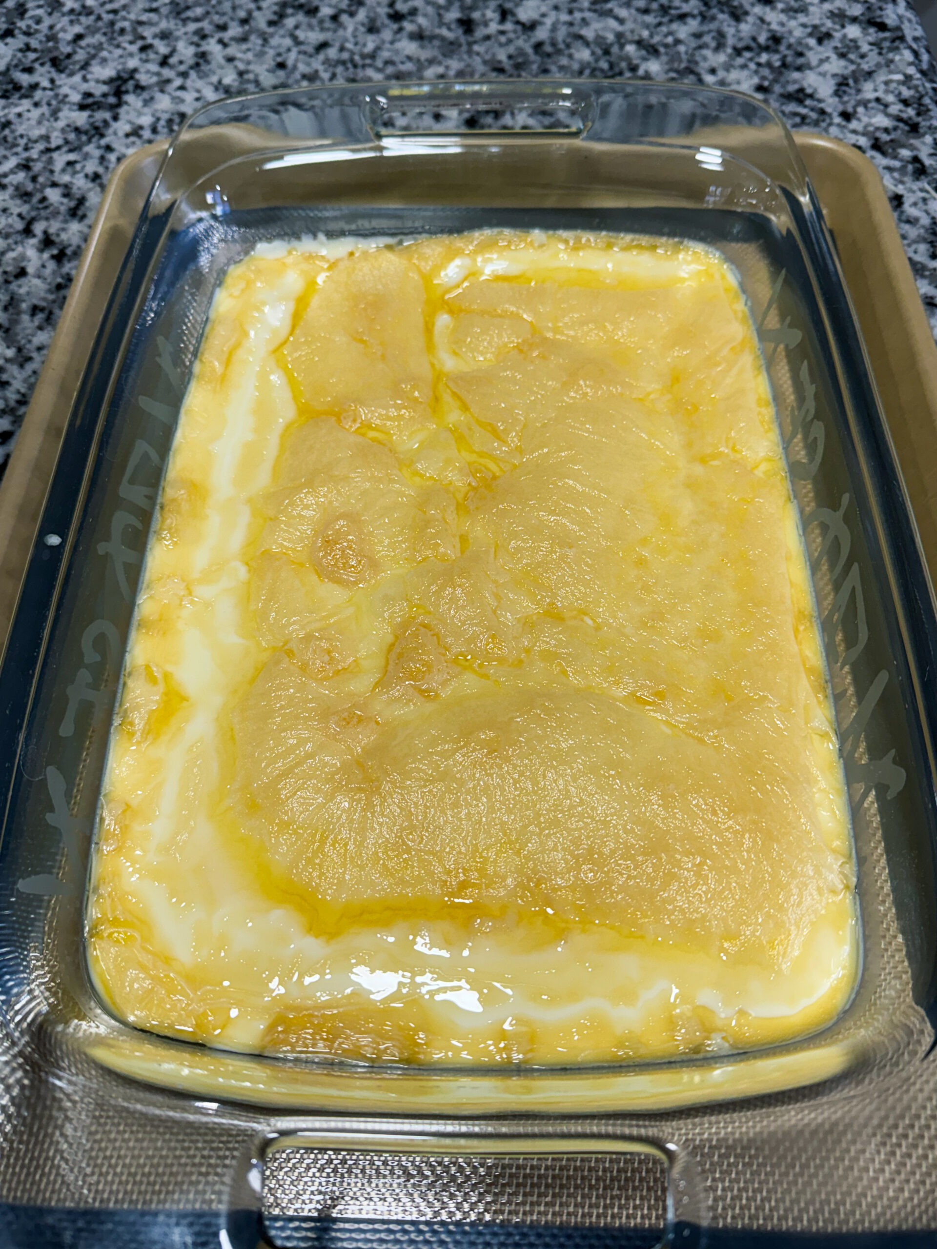 - Step 1: Prepare a space for your 13×9 to stay in your fridge for at least 12 hours. (This baked mixture currently has a baked layer on top of a liquid layer. It needs time to cool to be able to separate more.)