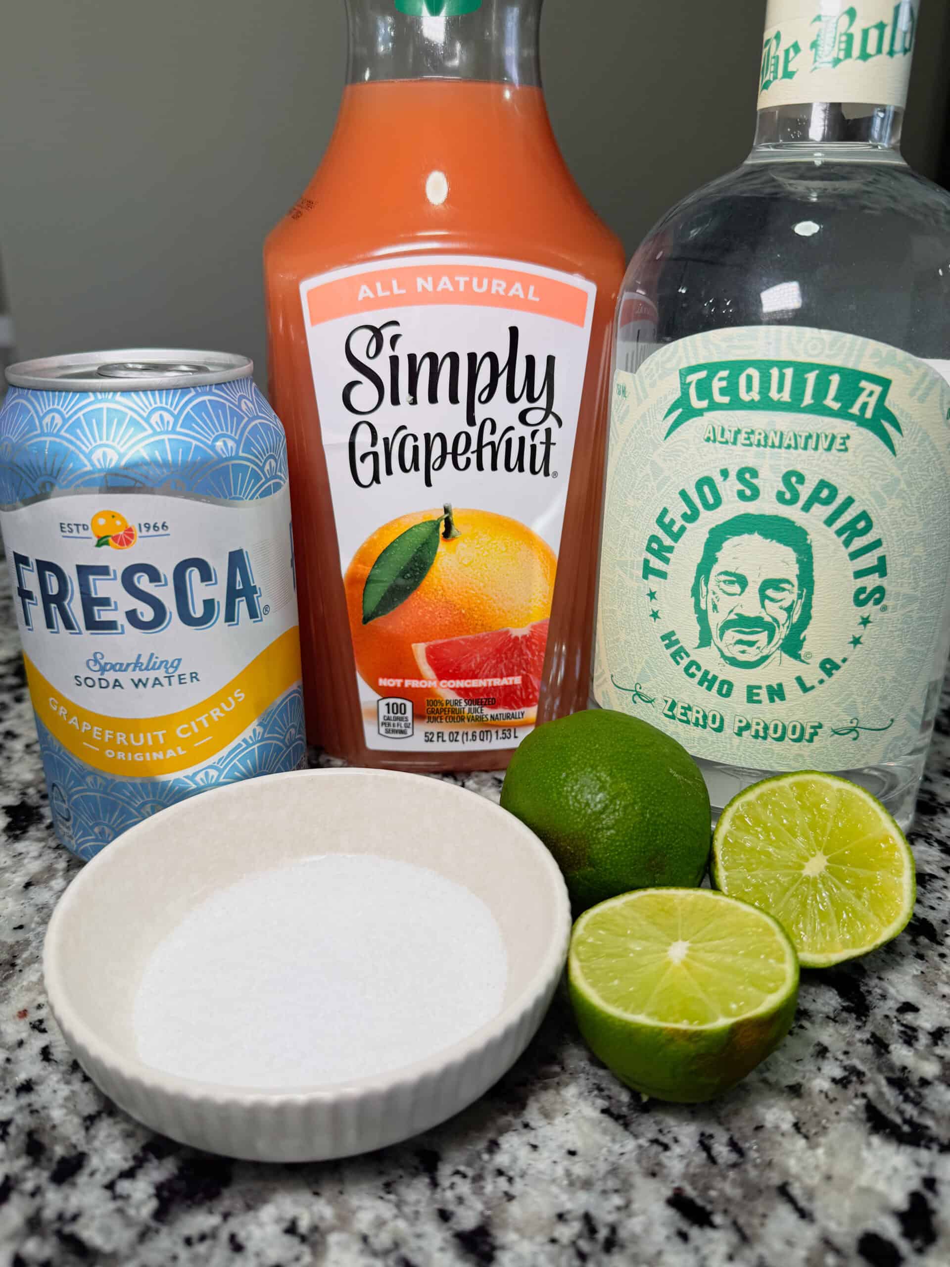 - Step 2: In a cocktail shaker, combine Simply Grapefruit Juice, lime juice, simple syrup, non-alcoholic tequila, and ice. Shake well until chilled and fully mixed.