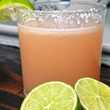 - Cut a lime into fourths and rub one wedge around the rim of your glass. Optional: dip the rim in kosher salt for a salty edge.