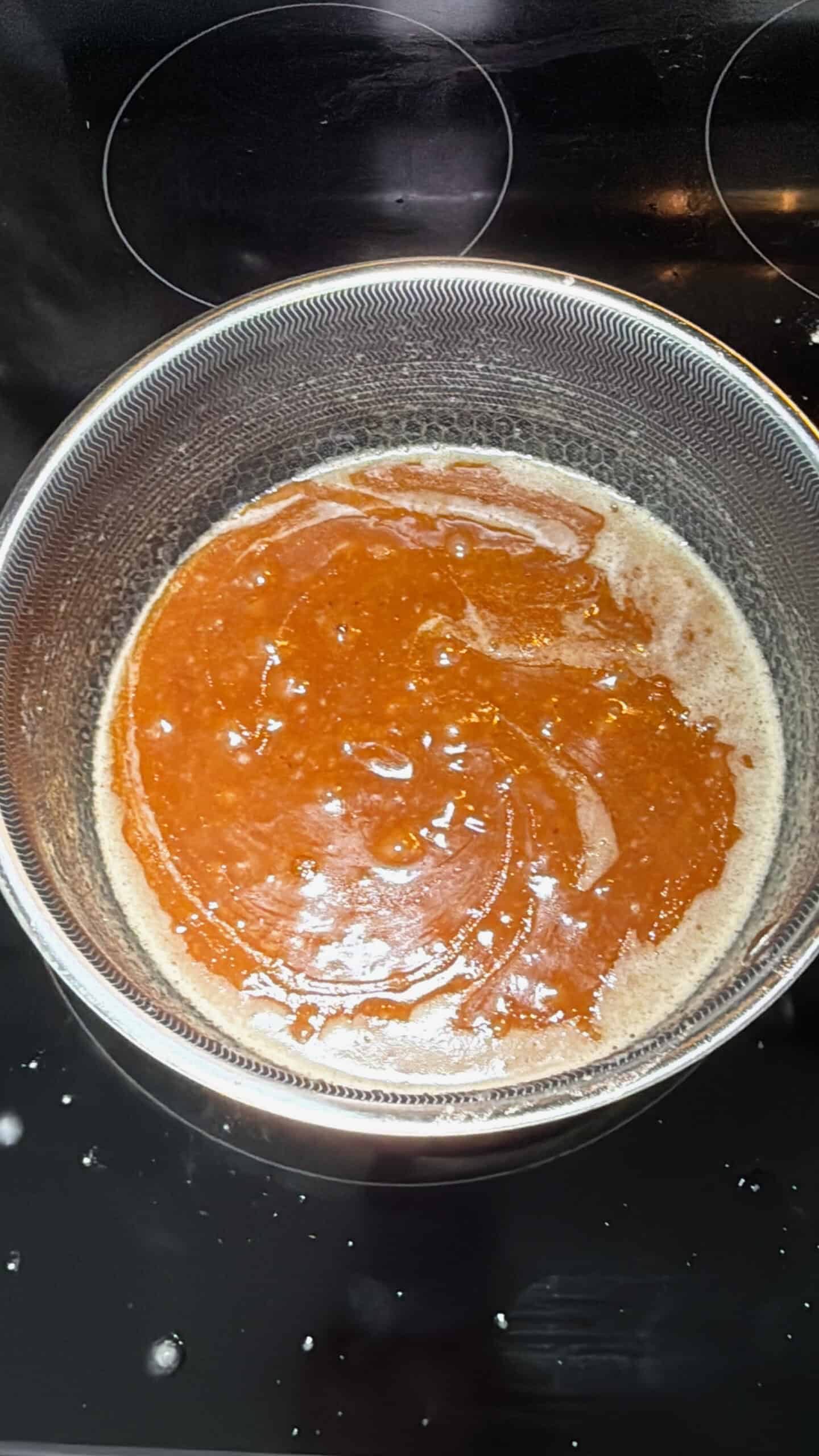 - Step 2: In a medium saucepan, melt the butter over medium heat. Stir in the flour and cook for 1 to 2 minutes until fragrant. Add the sugars, water, salt, cinnamon, and nutmeg. Bring the mixture to a gentle boil, then reduce heat and simmer for 3 to 5 minutes, stirring occasionally. Stir in the vanilla and remove from heat.