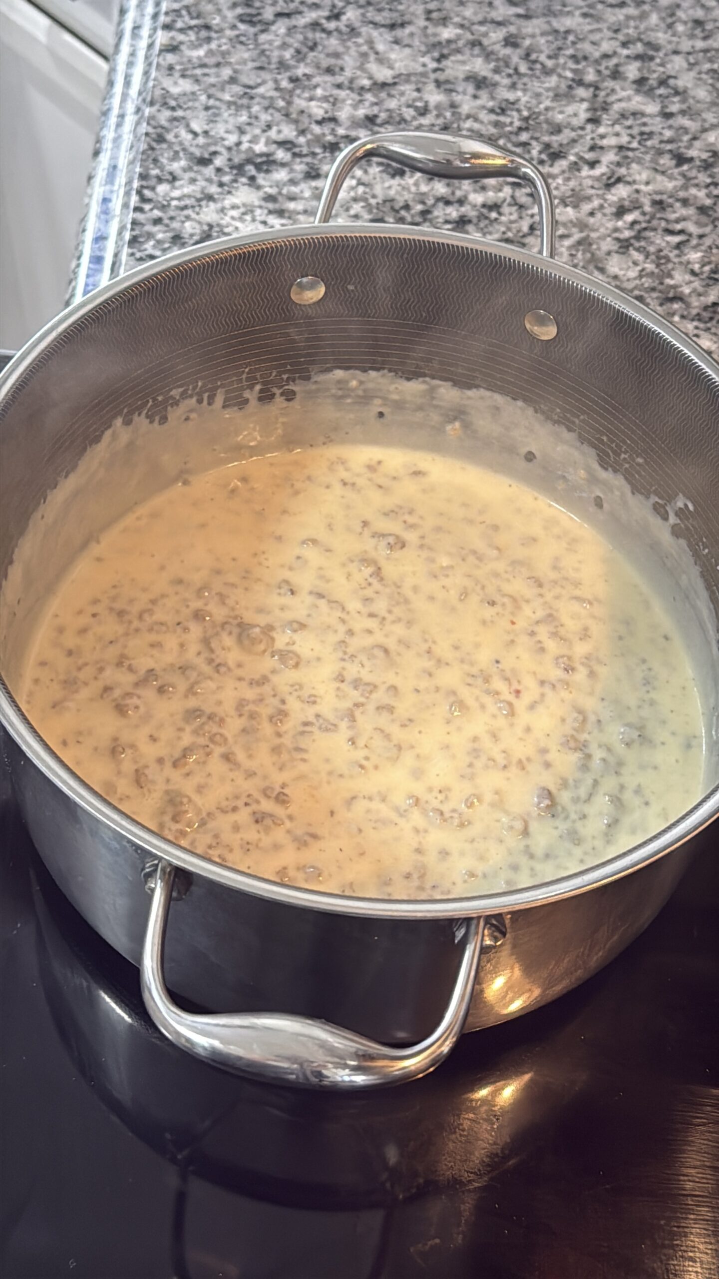 - Step 4: Cook until thick and creamy, remove from heat, and serve over biscuits, in breakfast burritos, or however you like. Enjoy!