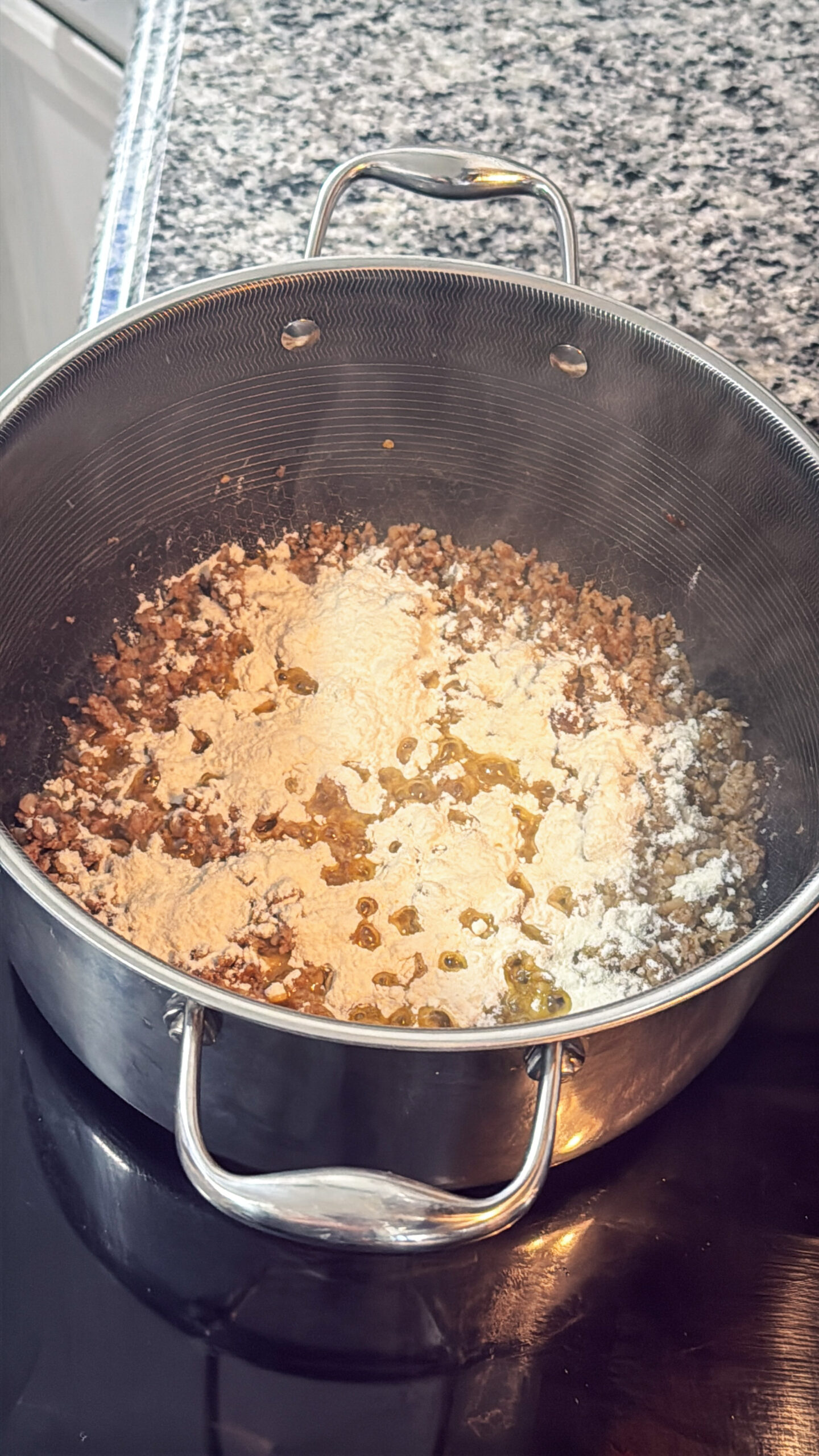 - Step 2: Gradually add the flour, stirring continuously until the mixture becomes smooth and fully incorporated.