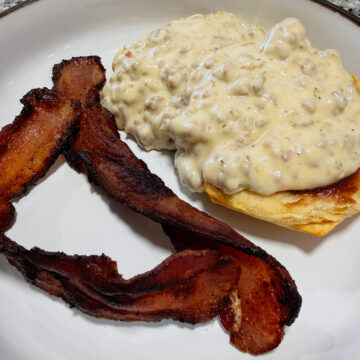 - Cook until thick and creamy, remove from heat, and serve over biscuits, in breakfast burritos, or however you like. Enjoy!